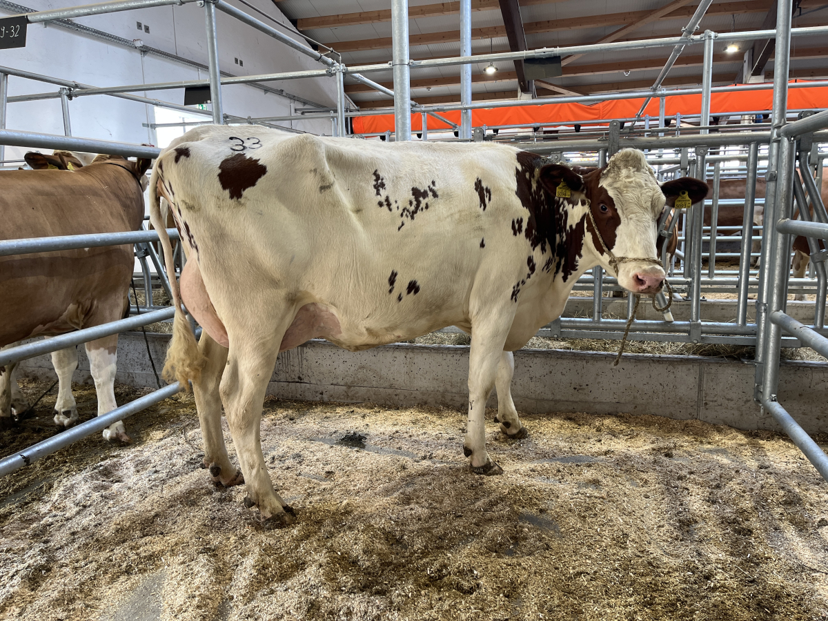 Bei der Rasse Holstein wurden 6 Kühe zum Verkauf angeboten. Auch hier konnte die Qualität der angebotenen Tiere nicht an die letzten Märkte anschließen. Besonders beliebt waren wieder Kühe mit viel Milch, korrekten Fundamenten, robotertauglichen Eutern und niedriger Zellzahl. Den Spitzenpreis von € 3.000,- erzielte eine genetisch hornlose Six Red-Tochter vom Betrieb Neubauer Christoph aus Spital am Pyhrn. Diese Jungkuh konnte mit sehr fest und hoch sitzendem Euter und garantierter Milchmenge von 34 kg gefallen. Bei den trächtigen Kalbinnen der Rasse Holstein ragte die Standnummer 60, ebenfalls eine Six Red-Tochter vom Betrieb Hofinger aus Pramet heraus, welche ebenfalls € 3.000,- erzielen konnte. Qualitativ herausragend waren diesmal die angebotenen Brown Suisse-Kühe. Den Spitzenpreis von € 2.900,- konnte hier der Betrieb Hackl aus Molln für eine Piccolo-Tochter mit perfektem Exterieur und einer garantierten Milchmenge von 30 Litern erzielen. Auch die trächtigen Kalbinnen konnten überzeugen. Hier konnte der Betrieb Hofinger aus Pramet ebenfalls € 2.900,- für eine kalibrige Vance-Tochter erzielen. Die kleinträchtigen Kalbinnen wurden zu ansprechenden Preisen von den Firmen Klinger und Schalk für den Export nach Algerien, Usbekistan und Aserbaidschan angekauft.
