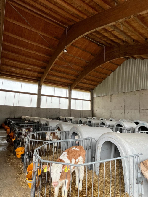Der Kälberstall am Betrieb Bernhart war ein echtes Highlight. Andreas Bernhart setzt hierbei den Schwerpunkt auf möglichst viel frische Luft, um möglichst gesunde Kälber heranzuziehen, wobei er die arbeitswirtschaftliche Sicht nie aus den Augen verliert und Arbeitsabläufe effizient gestaltet.