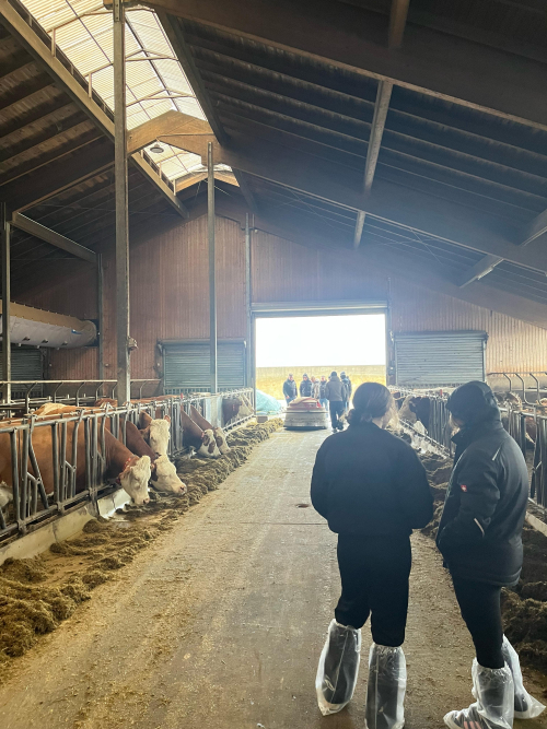 28 Mitglieder machten sich am 21. Februar auf den Weg nach Bayern. Der Betrieb der Familie Bernhart in Oberneukirchen in Bayern ermöglichte uns einen interessanten Einblick in ihren Betrieb mit 100 Kühen. Besonders im Fokus steht auf diesem Betrieb das Management ab der Geburt, um eine bestmögliche Leistung während der Laktation zu erreichen. Der Milchviehstall wurde 2023 erweitert und der Altbestand umgebaut, um ein luftiges und lichtdurchflutetes Stallklima zu erreichen, welches Höchstleistungen ermöglicht.